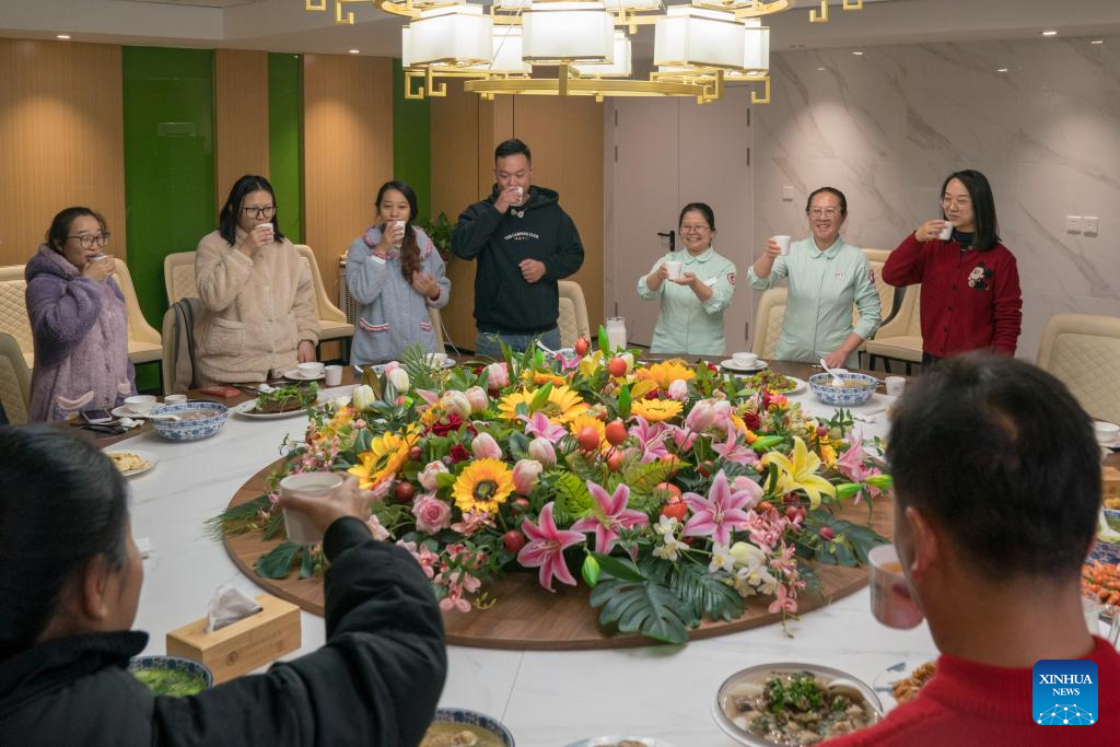 Firefighters have a meal at a fire station in Taizhou City, east China's Jiangsu Province, Jan. 28, 2025. Dining with family members in a reunion meal has been a cherished tradition for the Chinese on the eve of the Spring Festival, which falls on Jan. 29 this year. (Photo by Yang Yugang/Xinhua)