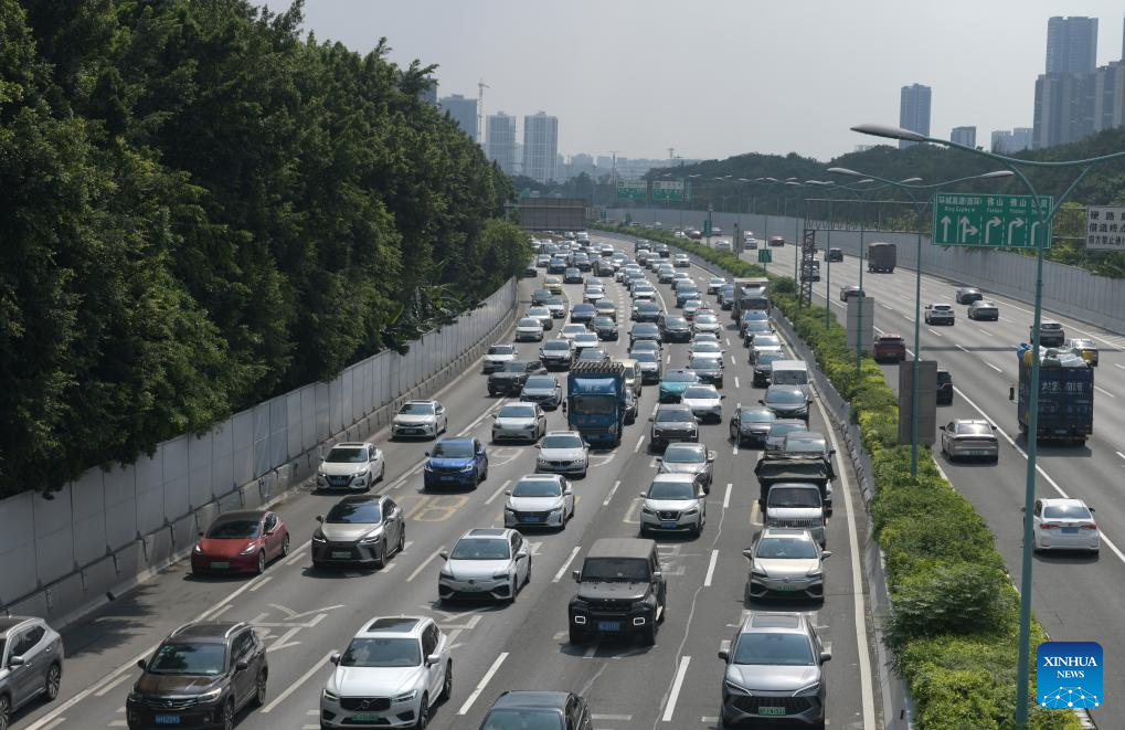 Vehicles are pictured on the Ring Expressway in Guangzhou, south China's Guangdong Province, on Oct. 1, 2025. The transportation network of the country witnessed a travel peak on the first day of the National Day holiday. (Xinhua/Lu Hanxin)