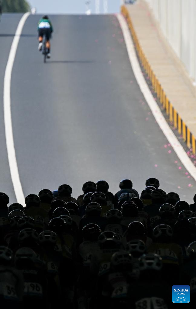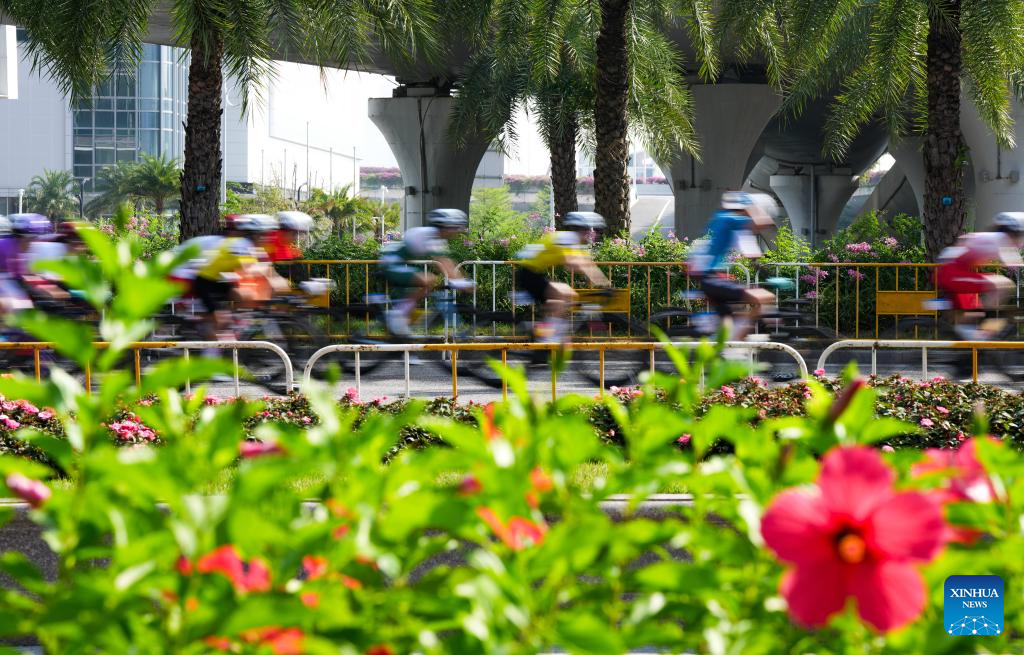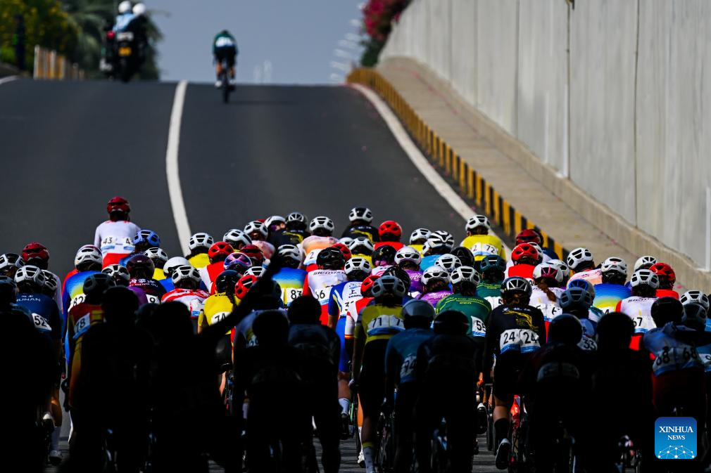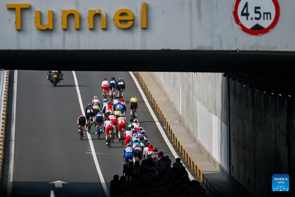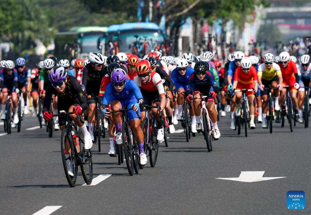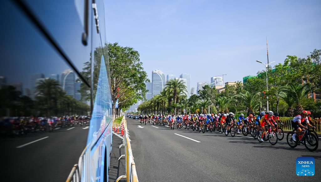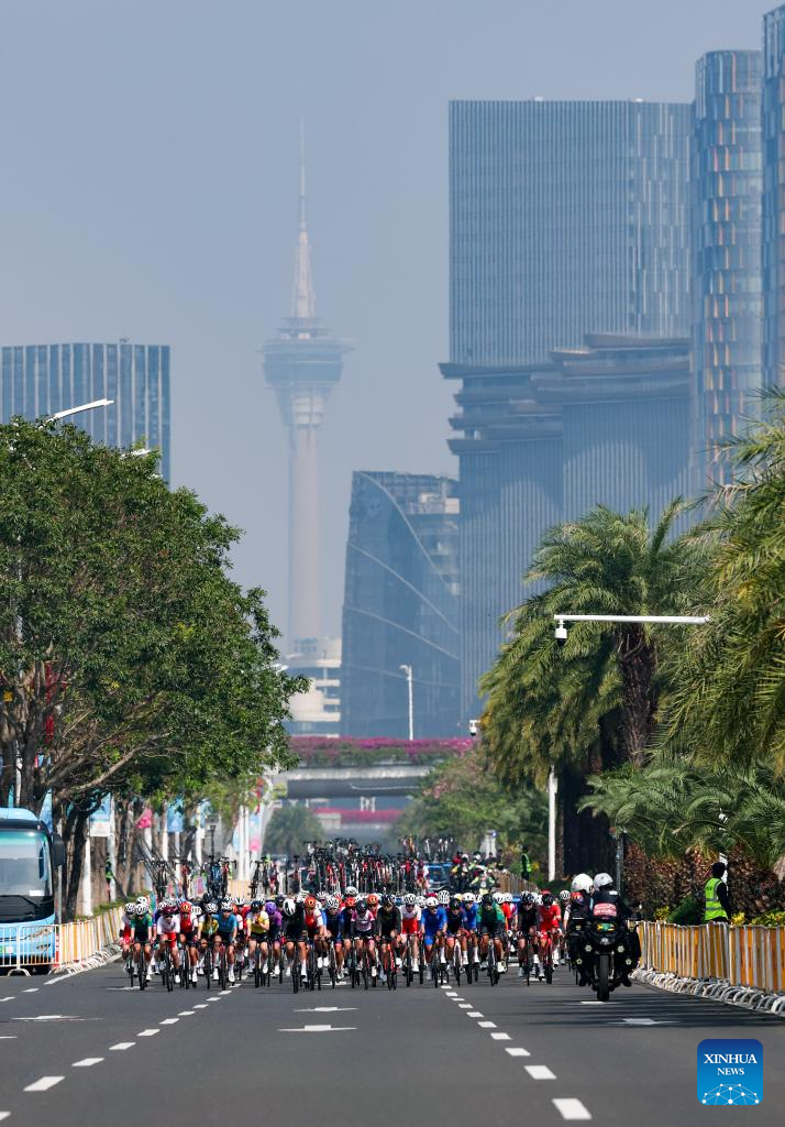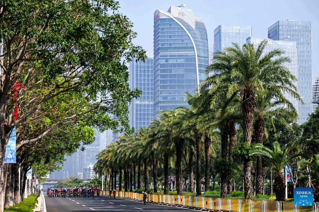 Cyclists compete during the women's road race of cycling road at China's 15th National Games in south China's Guangdong Province, Nov. 9, 2025. (Xinhua/Lian Zhen)