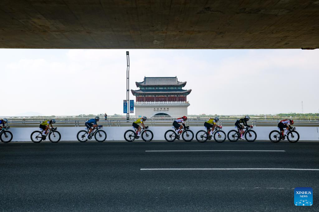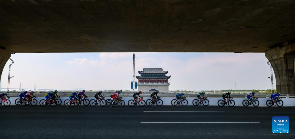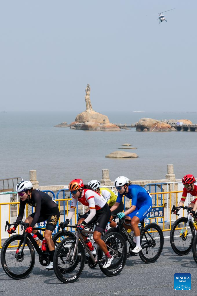 Cyclists compete during the women's road race of cycling road at China's 15th National Games in south China's Guangdong Province, Nov. 9, 2025. (Xinhua/Liang Xu)