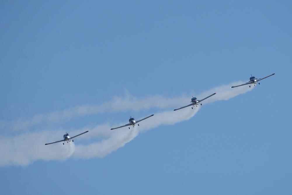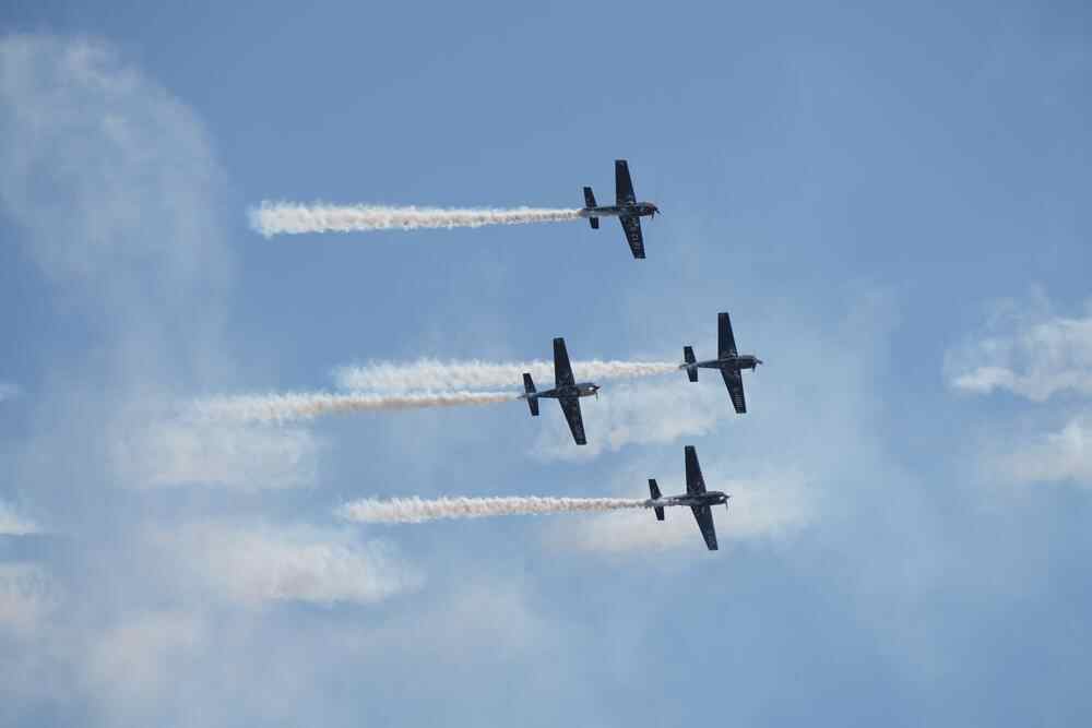 Performing in a diamond formation with four EXTRA300 planes, the team executed maneuvers under multiple gravitational forces, creating mesmerizing aerial displays with ribbon-like patterns in the sky.