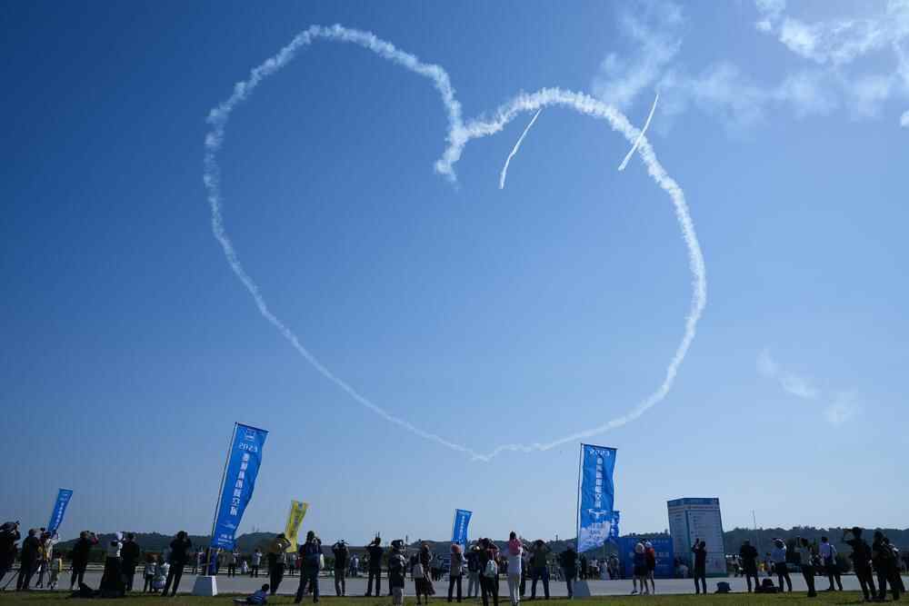 In a romantic finale, the four planes split into two groups, crafting two hearts in the sky - an exclusive and romantic gesture for Zhuhai, the city of romance.
