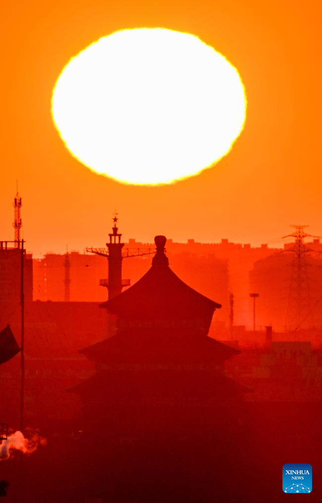 This photo taken at the Jingshan Park on Jan. 1, 2026 shows the sunrise in Beijing, capital of China.
