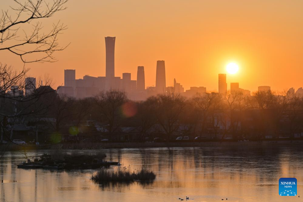 This photo taken on Jan. 1, 2026 shows the scenery at sunrise in Beijing, capital of China.