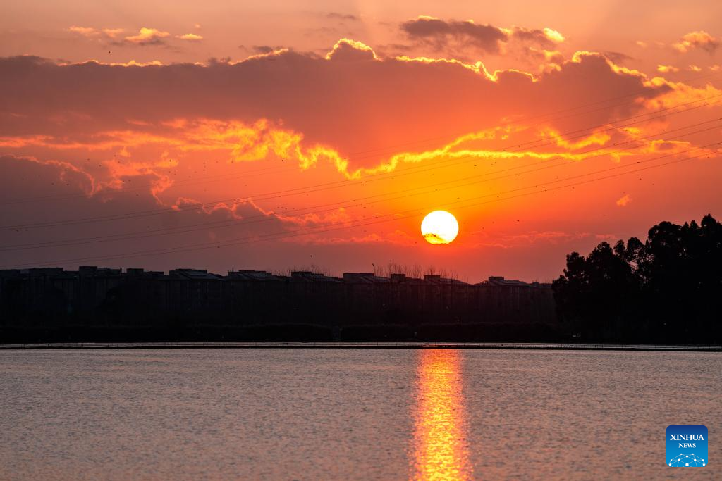 This photo taken on Jan. 1, 2026 shows the scenery of Dianchi Lake at sunrise in Kunming, southwest China's Yunnan Province.