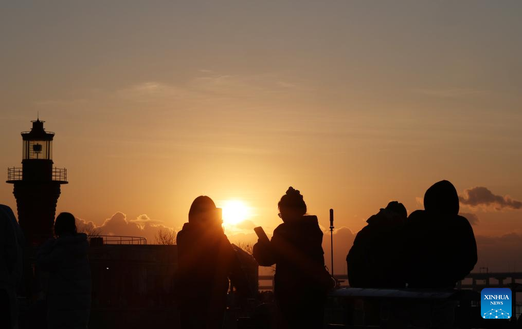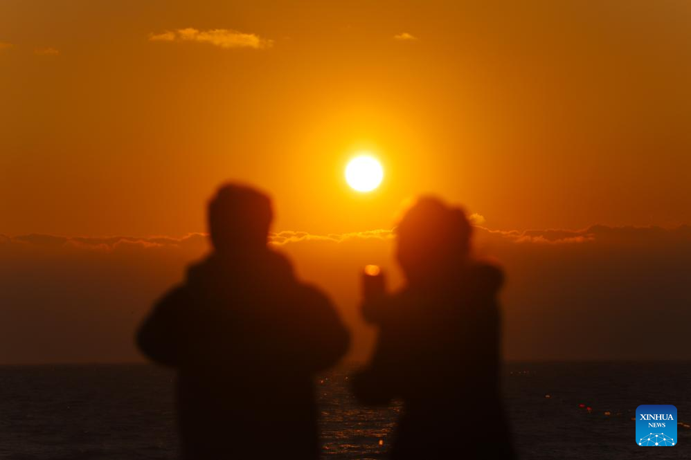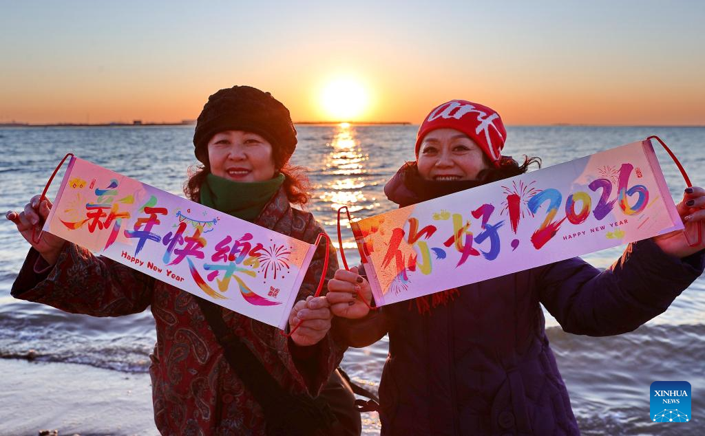 People watch the sunrise by the seaside at Xinghai Square in Dalian, northeast China's Liaoning Province, on Jan. 1, 2026.