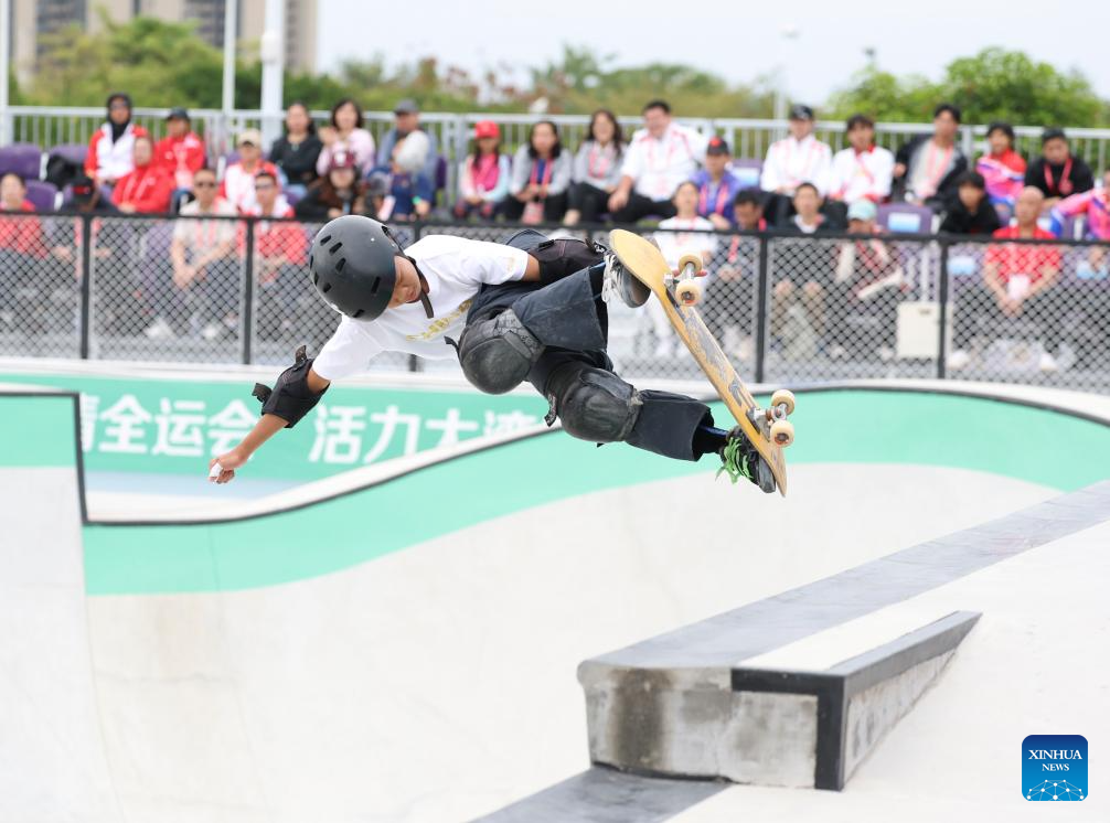 Zou Mingke of Guangdong competes during the women's park final of skateboarding at China's 15th National Games in Huizhou, south China's Guangdong Province, Nov. 11, 2025. (Xinhua/Lu Hanxin)