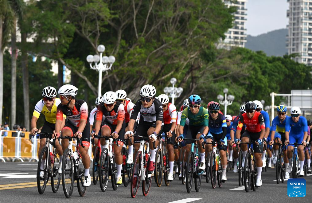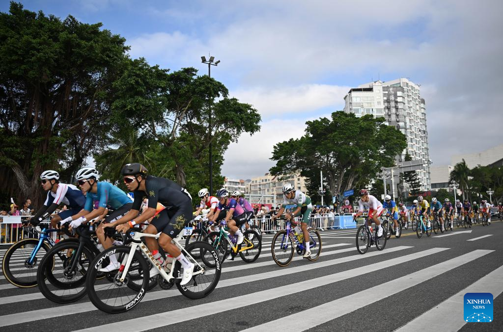 Cyclists compete during the men's road race of cycling road at China's 15th National Games in south China's Guangdong Province, Nov. 8, 2025. (Xinhua/Lian Zhen)