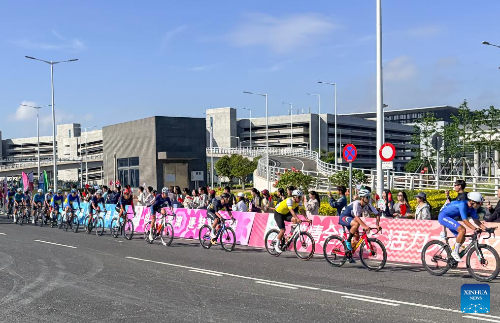 Athletes compete during the men's road race of cycling road at China's 15th National Games in Zhuhai, south China's Guangdong Province, Nov. 8, 2025. (Xinhua/Mao siqian)