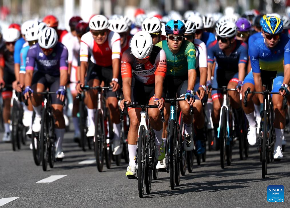 Athletes compete during the men's road race of cycling road at China's 15th National Games in Zhuhai, south China's Guangdong Province, Nov. 8, 2025. (Xinhua/Lian Zhen)