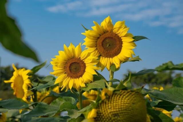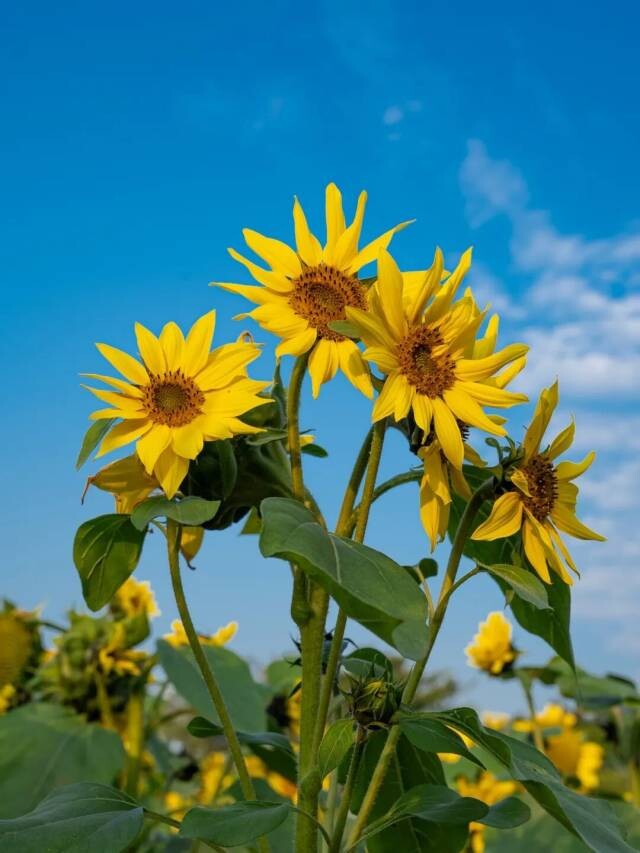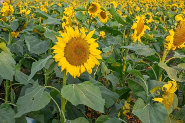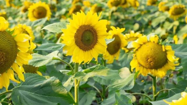 This stunning display has quickly become a local favorite. The sunflowers, with their large, vibrant heads ranging in color from deep amber to soft yellow, stand tall amidst lush green leaves. Up close, the intricate details of the blossoms and the busy bees flitting between them showcase the vivid pulse of life. A gentle breeze sets the flowers nodding softly, creating a serene and joyful atmosphere