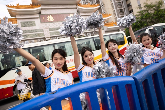 Cheerleaders at Liede Village Archway: Enthusiastic performances cheer on runners with songs and dances.