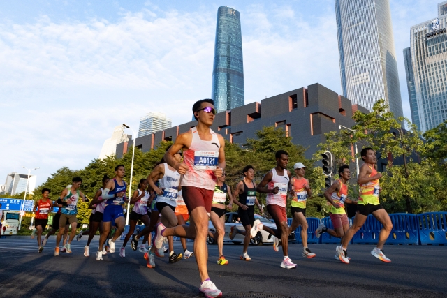 At the Linjiang Avenue segment, runners advance with determination as they head toward the sun.