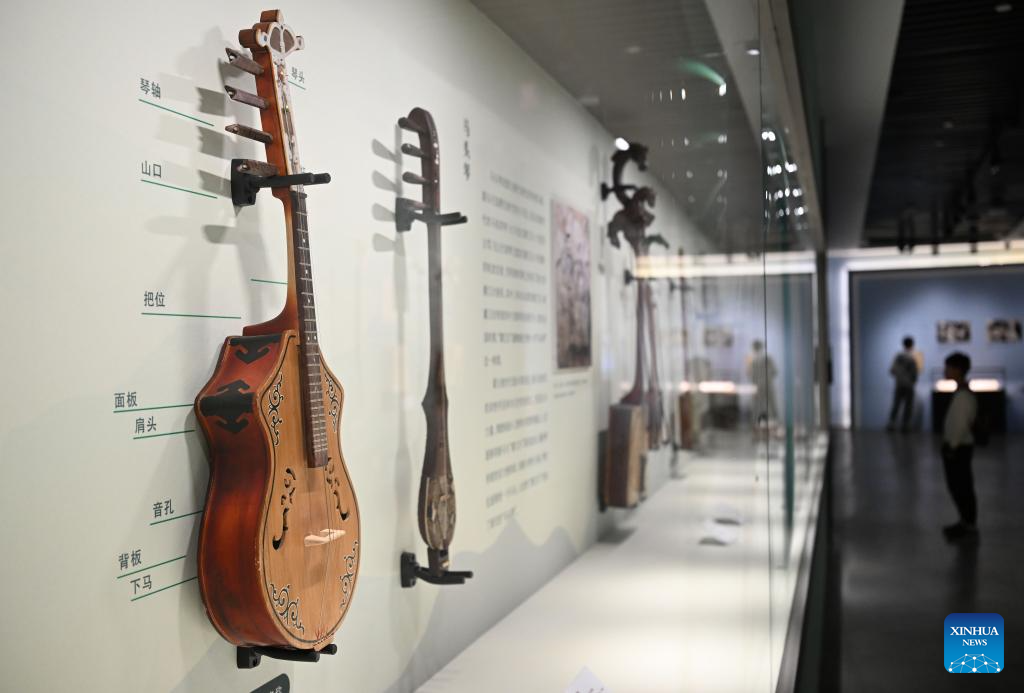 Musical instruments are on display during an exhibition themed on various music cultures along the ancient Silk Road at Guangzhou Maritime Museum in Guangzhou, south China's Guangdong Province, Nov. 29, 2025. The exhibition kicked off here on Saturday, showcasing 143 ancient musical instruments from countries along the Silk Road. The exhibition, which will run until April 6, 2026, presents the historical context and artistic integration of musical instruments in the cultural exchanges between the East and the West. (Xinhua/Deng Hua)