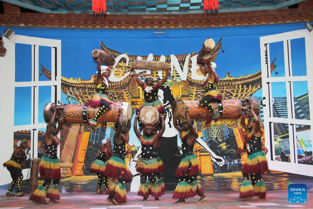 Local artists perform traditional Beninese dance during a Spring Festival gala at the Chinese Cultural Center in Cotonou, Benin, Jan. 25, 2025. The 2025 "Happy Chinese New Year" celebrations kicked off here recently, which will last till Feb. 12. (Photo by Seraphin Zounyekpe/Xinhua)