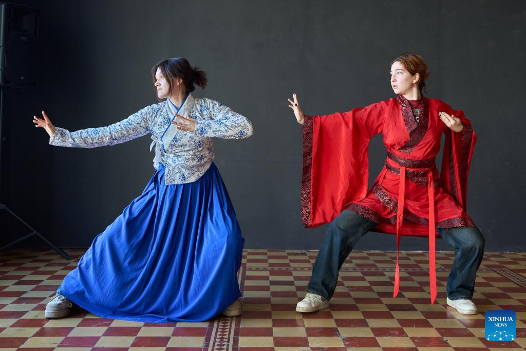 Participants learn Baduanjin, a traditional form of Chinese aerobic exercise, during an event in celebration of the Chinese New Year at the Confucius Institute of Far Eastern Federal University of Russia, in Vladivostok, Russia, Jan. 29, 2025. The Confucius Institute of Far Eastern Federal University of Russia hosted a Chinese New Year cultural experience event, attracting many participants. (Photo by Guo Feizhou/Xinhua)