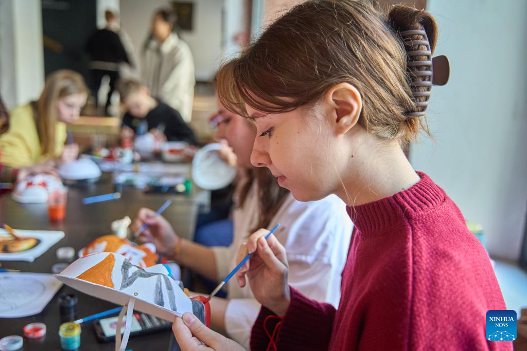 Participants paint Beijing Opera masks during an event in celebration of the Chinese New Year at the Confucius Institute of Far Eastern Federal University of Russia, in Vladivostok, Russia, Jan. 29, 2025. The Confucius Institute of Far Eastern Federal University of Russia hosted a Chinese New Year cultural experience event, attracting many participants. (Photo by Guo Feizhou/Xinhua)