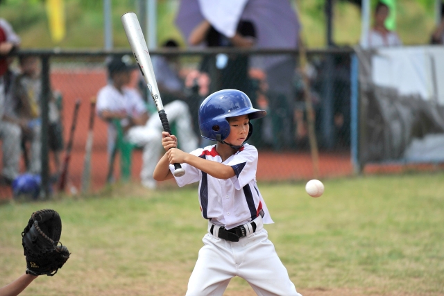 A young player is hitting the ball.