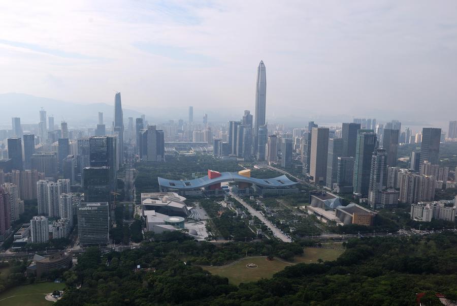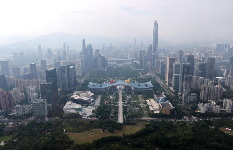 This photo taken from an helicopter on Nov. 2, 2025 shows an aerial view of the launching ceremony of the torch relay for China's 15th National Games in Shenzhen, south China's Guangdong Province. (Xinhua/Liang Xu)