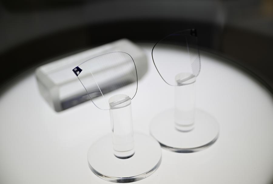 Lens for AR glasses are pictured at the Intelligent Industry and Information Technology exhibition area of the eighth China International Import Expo (CIIE) in east China's Shanghai, Nov. 6, 2025. (Xinhua/Cai Xiangxin)